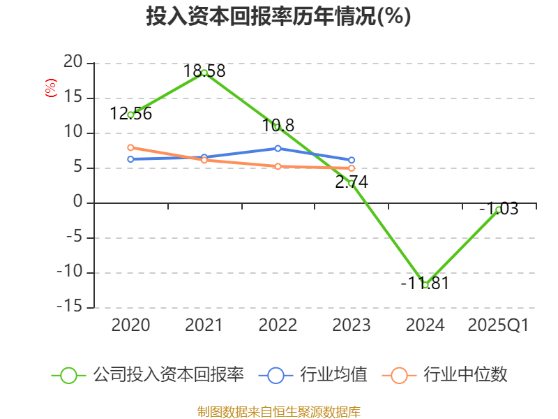 盈利能力方面, 2025年一季度公司加权平均净资产收益率为-1.79%,同比下降0.5个百分点。公司2025年第一季度投入资本回报率为-1.03%,较上年同期上升0.01个百分点。