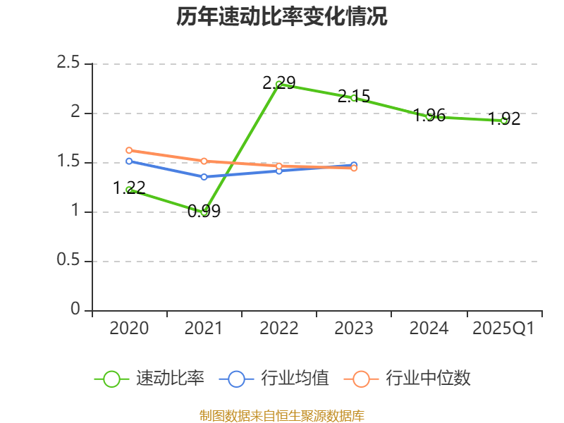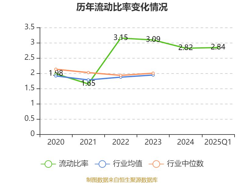 2025年第一季度,公司流动比率为2.84,速动比率为1.92。